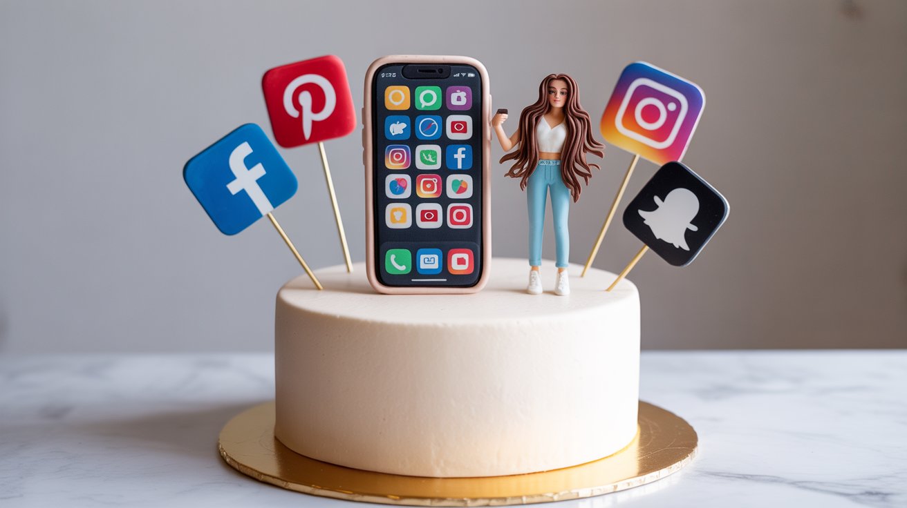 Influencer Cake | Smartphone & Social Media Theme | EatMore – D025